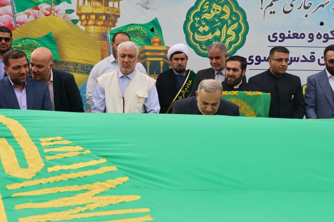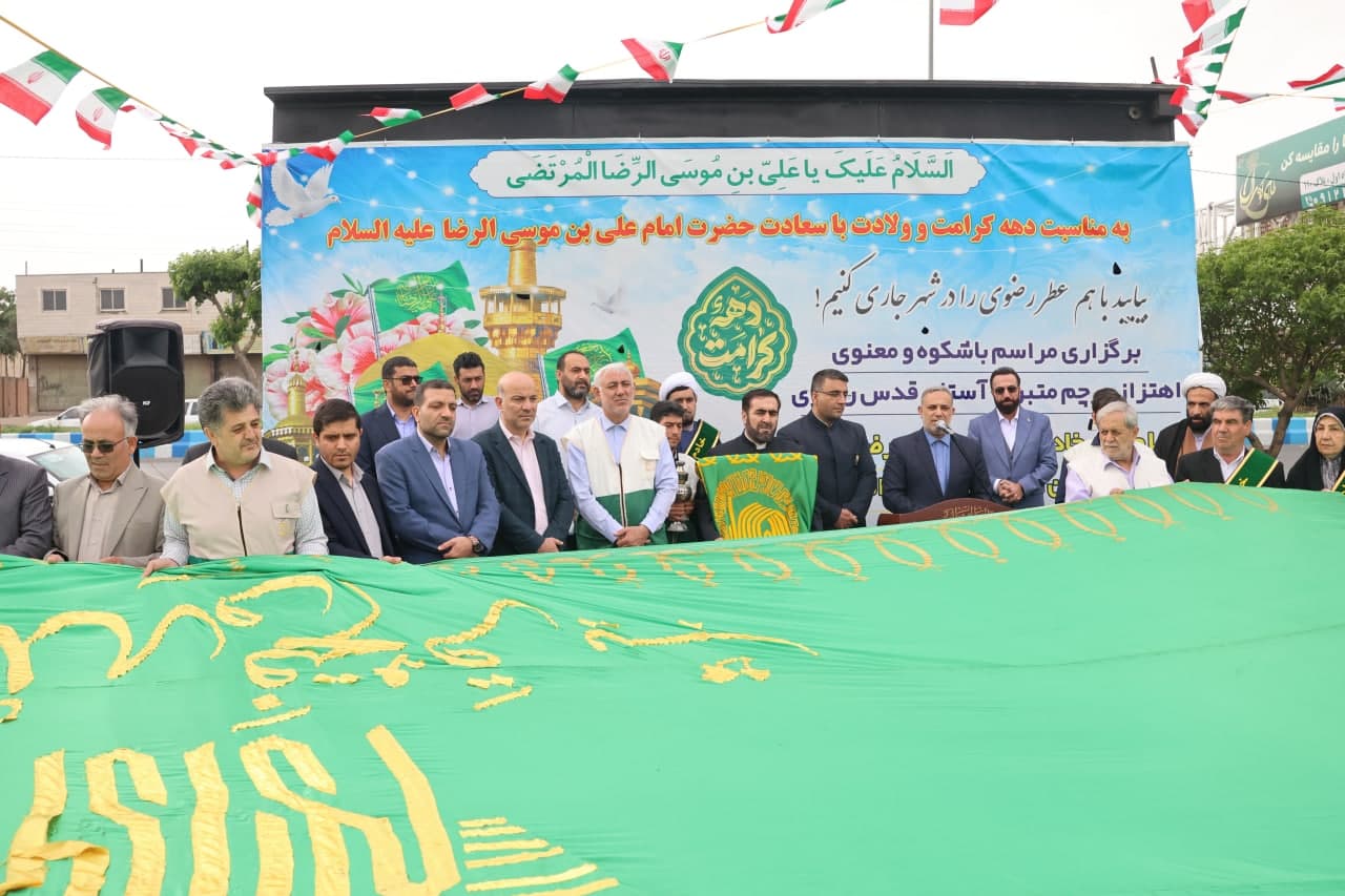 آیین اهتزاز پرچم های متبرک حرم امام رضا (ع) در دو بخش گلستان و بوستان، همزمان با سالروز ولادت حضرت فاطمه معصومه (س) و آغاز دهه کرامت، با حضور پرشور مردم و مسئولین برگزار شد.