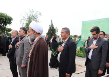 اهتزاز پرچم رضوی طی مراسمی با حضور علی محمد اسلامی فرماندار و رؤسای سایر ادارات و مردم ولایتمدار و دلباختگان اهل بیت عصمت و طهارت (ع) در میدان شهید ستاری برگزار شد.
