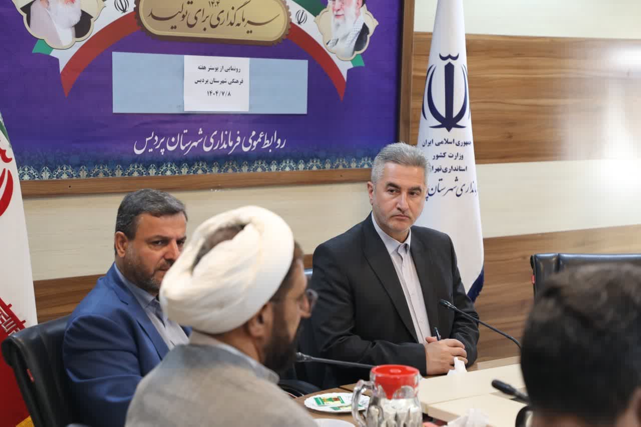 به گزارش پایگاه اطلاع رسانی فرمانداری پردیس، در آیینی و با حضور رضا طاهرخانی فرماندار پردیس، جعفری معاون سیاسی، امنیتی و اجتماعی فرماندار و روسای ادارات فرهنگ و ارشاد اسلامی، ورزش و جوانان، بهزیستی و اداره اجتماعی و فرهنگی فرمانداری، پوستر نمایشگاه هفته فرهنگی شهرستان رونمایی شد.