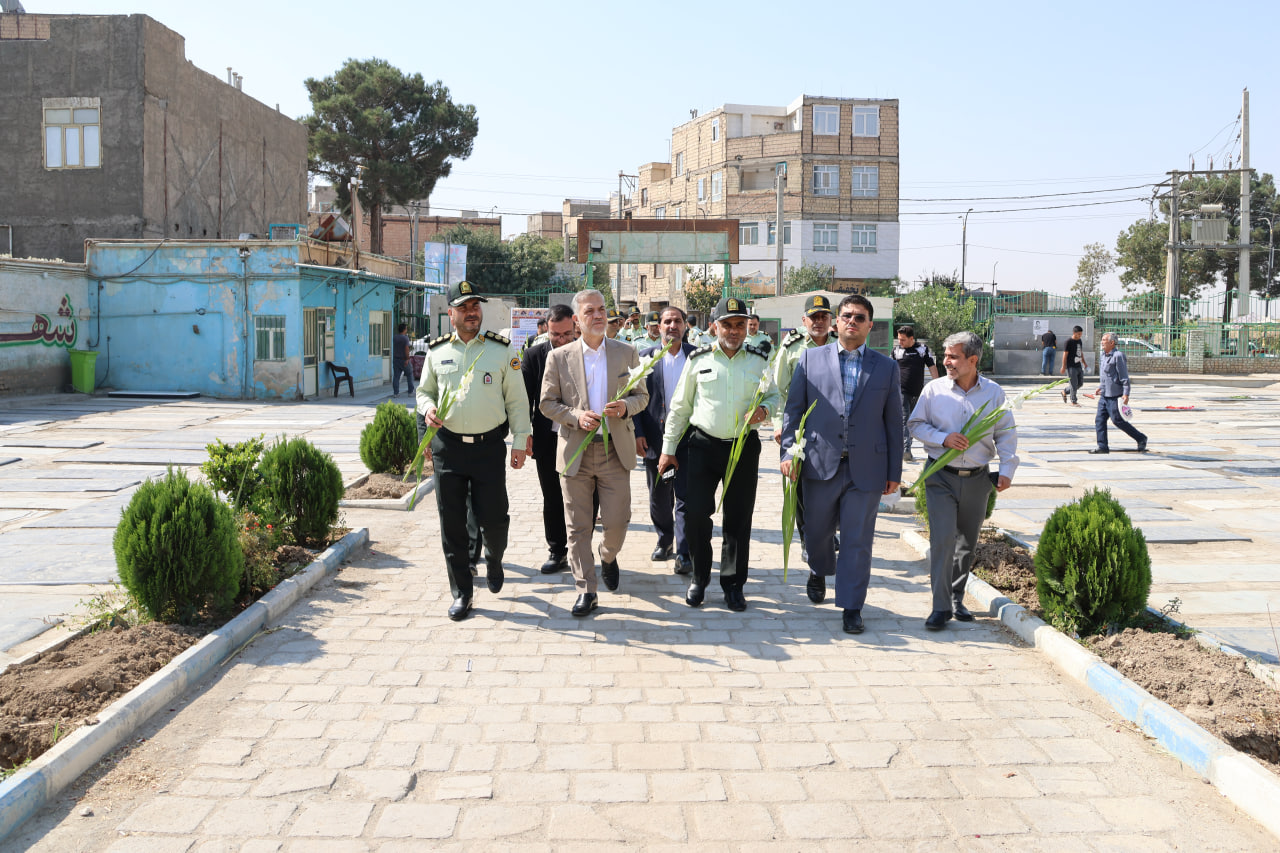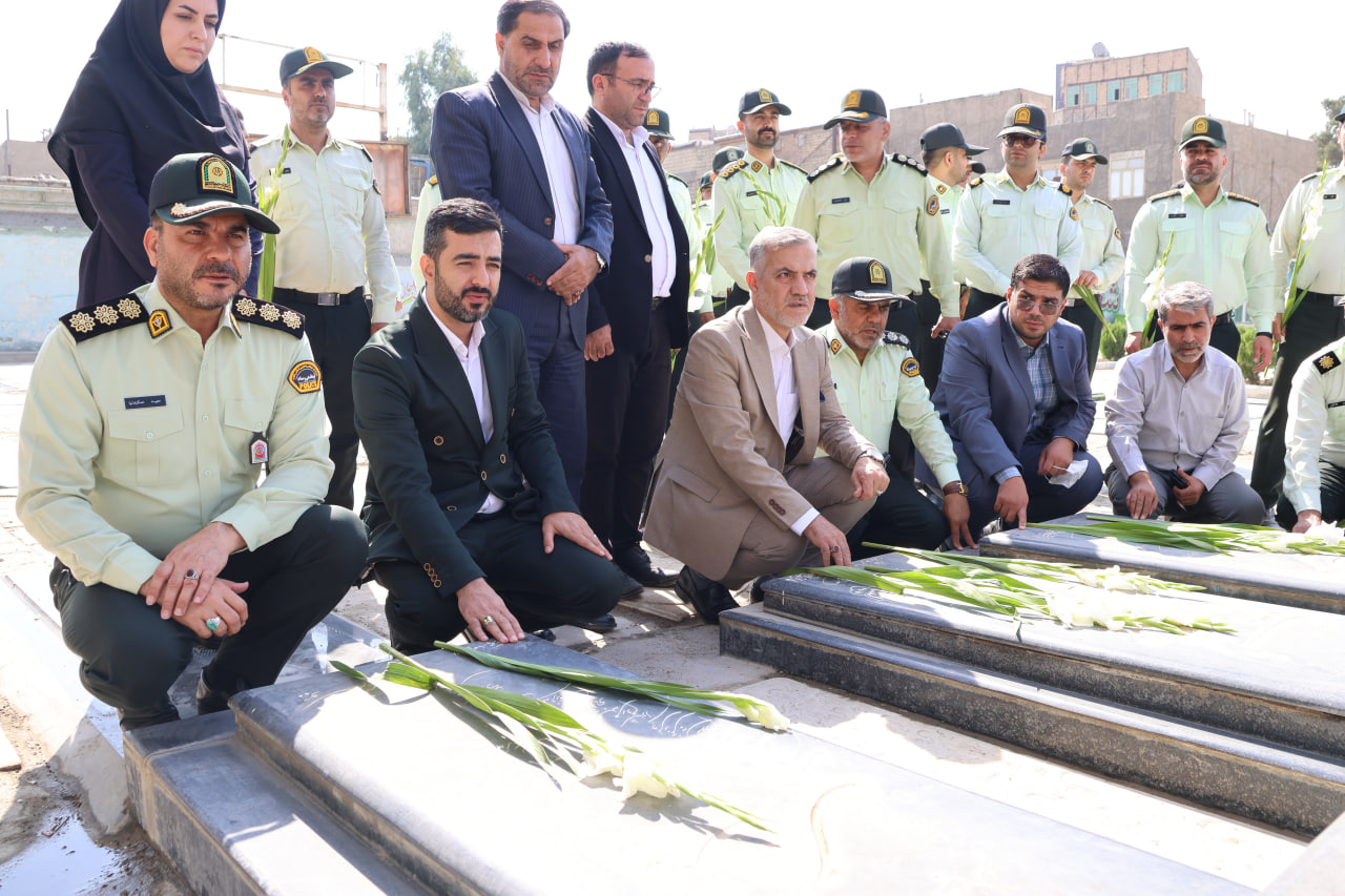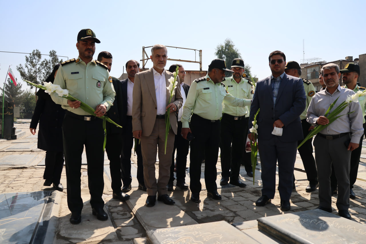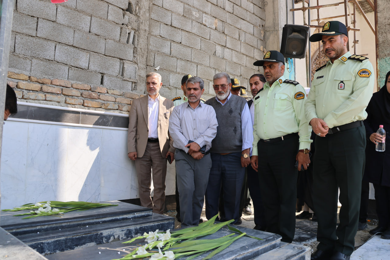 عطرافشانی گلزار شهدای شهرستان بهارستان در امام زاده باقر(ع) به مناسبت هفته فراجا